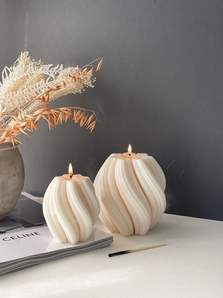 Complete your home's interior ambience with this exquisite Swirl Candle Set of 2. The exquisite swirl pattern will lend a beautiful and stylish detail to your coffee table, while its wonderfully scented aroma will create a cozy and inviting space for you to relax in. This set will add a unique touch to any room with its twisted spiral, ribbed shape pillar, and geometric design. Perfect for decorative or gifting purposes, the aesthetically pleasing candles offer a unique aesthetic.