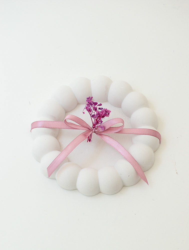 Χειροποίητος δίσκος από προσελάνη με ιδιαίτερο bubble σχέδιο. Αποτελεί μια σύγχρονη και εκλεπτυσμένη επιλογή για μπομπονιέρα γάμου ή βάπτισης, με minimal χαρακτήρα και δυνατότητα προσαρμογής στο ύφος της εκδήλωσης.