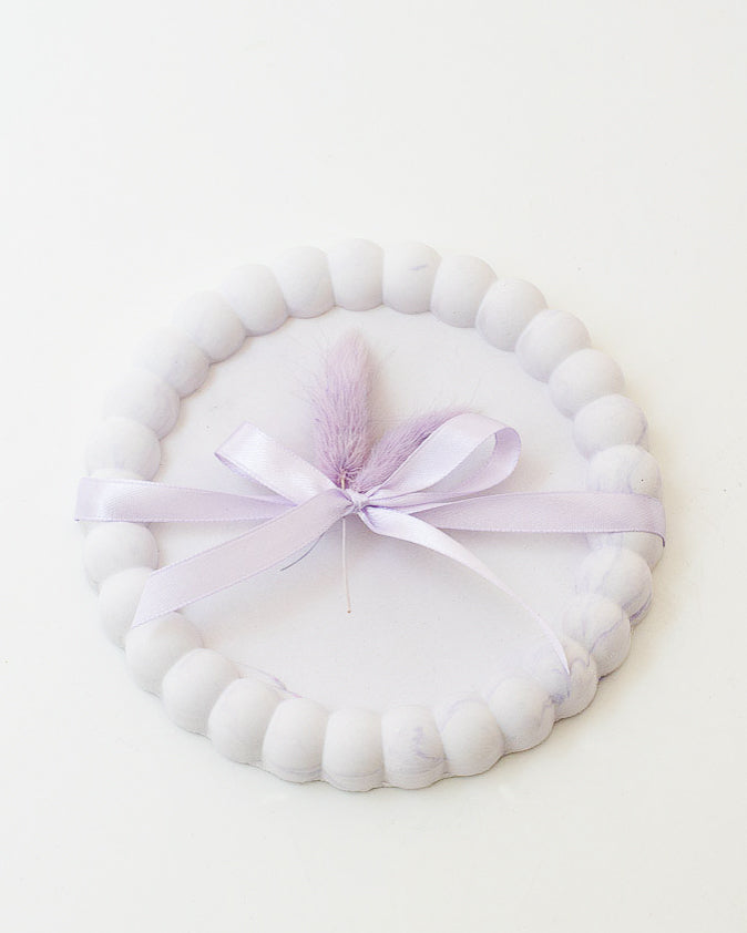 Χειροποίητος δίσκος από προσελάνη με ιδιαίτερο bubble σχέδιο. Αποτελεί μια σύγχρονη και εκλεπτυσμένη επιλογή για μπομπονιέρα γάμου ή βάπτισης, με minimal χαρακτήρα και δυνατότητα προσαρμογής στο ύφος της εκδήλωσης.