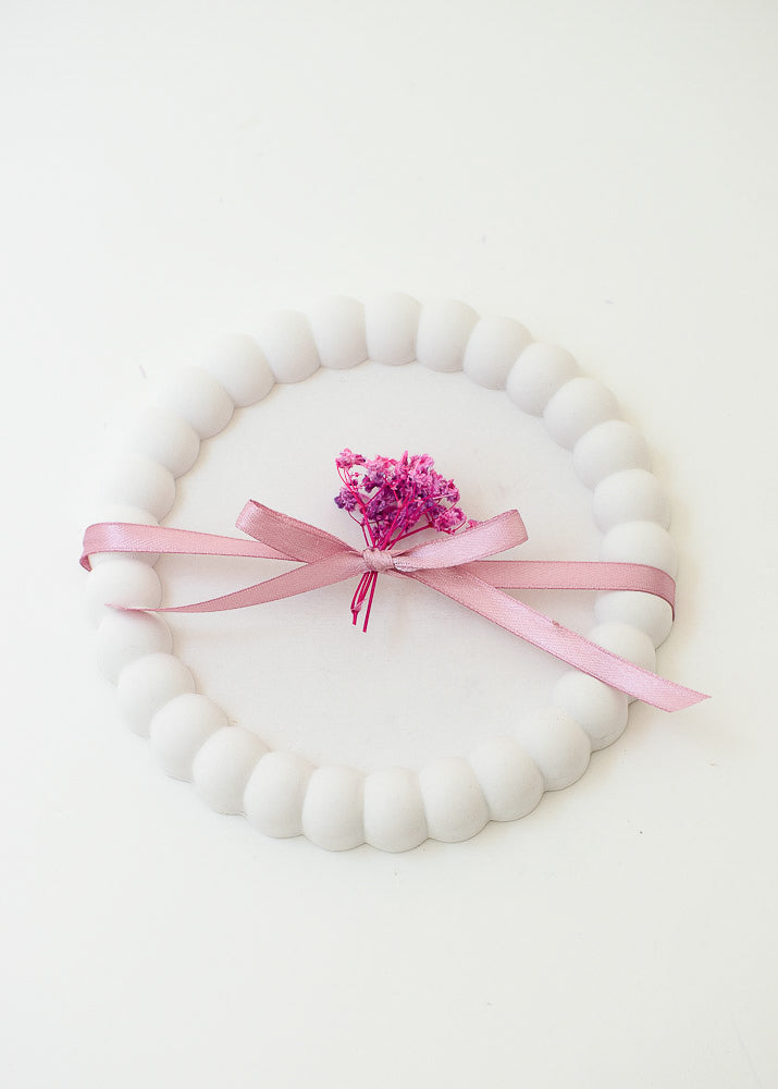 Χειροποίητος δίσκος από προσελάνη με ιδιαίτερο bubble σχέδιο. Αποτελεί μια σύγχρονη και εκλεπτυσμένη επιλογή για μπομπονιέρα γάμου ή βάπτισης, με minimal χαρακτήρα και δυνατότητα προσαρμογής στο ύφος της εκδήλωσης.